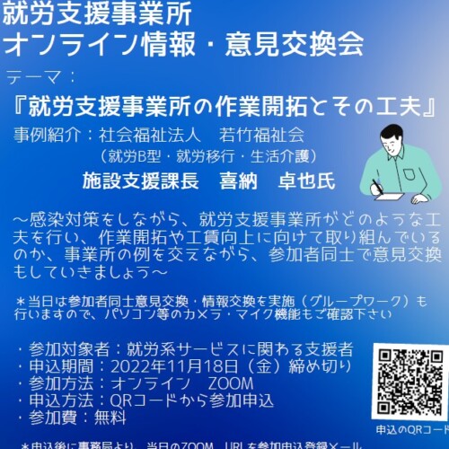 2022年11月29日(火)に就労支援事業所オンライン情報・意見交換会を開催します!