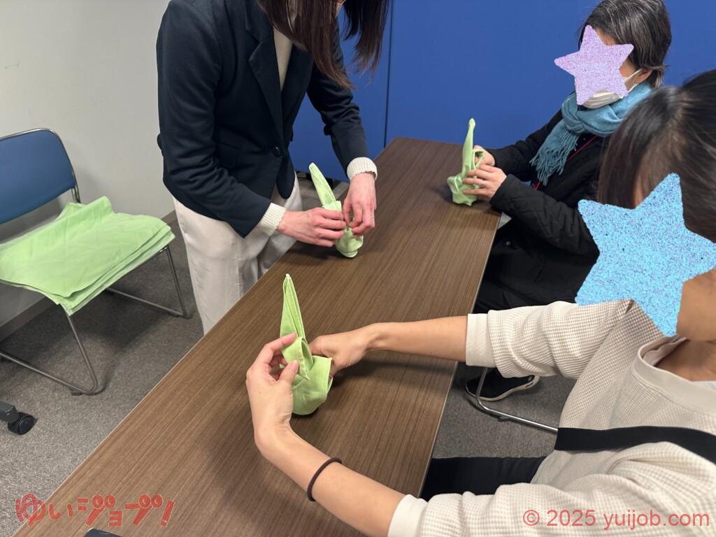 | (株)舞浜コーポレーション | ナプキン折り、スタンプ押し |